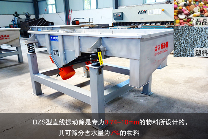 DZS型直線振動篩是專為0.74-10mm的物料所設(shè)計的,其可篩分含水量為7%的物料,主要的篩分物料是:磨料模具原料,塑料,化工,醫(yī)藥等干式的粉狀物料,以及細(xì)顆粒和細(xì)微粉物料等。