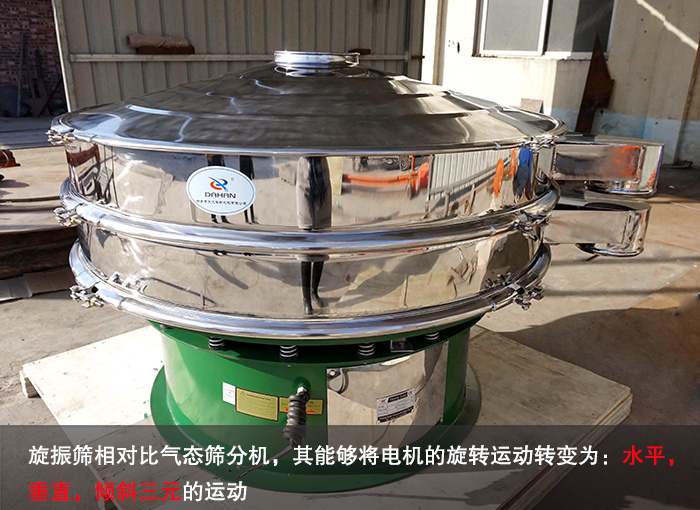 旋振篩相對(duì)比氣態(tài)篩分機(jī),其能夠?qū)㈦姍C(jī)的旋轉(zhuǎn)運(yùn)動(dòng)轉(zhuǎn)變?yōu)椋?span style="color:#ff8c00;">水平,垂直,傾斜三元的運(yùn)動(dòng)。其不僅提高了篩網(wǎng)的利用率而且,調(diào)節(jié)上,下兩端的相位角,使得物料在篩網(wǎng)上的運(yùn)動(dòng)軌跡發(fā)生變化,從而使紅薯淀粉可以進(jìn)行更加精細(xì)的篩分。