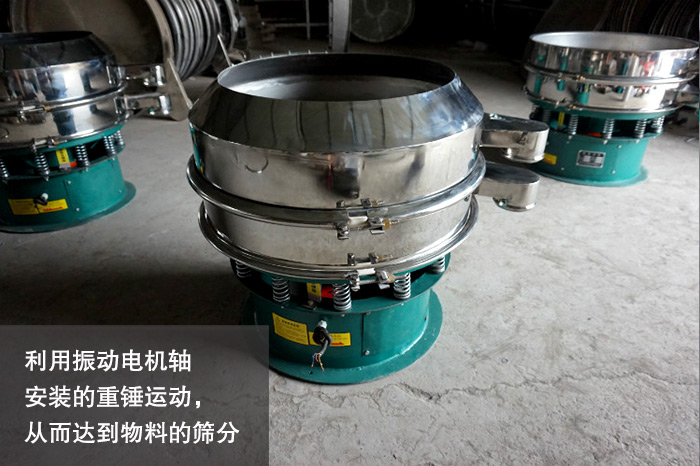 加緣震動(dòng)篩其是對(duì)震動(dòng)篩一種結(jié)構(gòu)上的改造,其工作原理:是利用振動(dòng)電機(jī)軸上下端所安裝的重錘運(yùn)動(dòng),從而帶動(dòng)篩網(wǎng)的運(yùn)動(dòng)而實(shí)現(xiàn)香料粉篩分的效果。其原理可以使物料在篩分中做360°的全身翻轉(zhuǎn),從而能夠達(dá)到物料被充分的篩分。